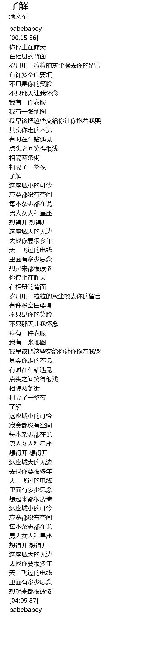 | [00:29.04] | 岁月用一粒粒的灰尘擦去你的留言 |