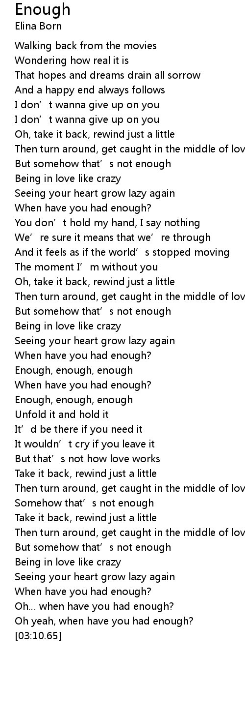 | [01:51.12] | Enough, enough, enough |
