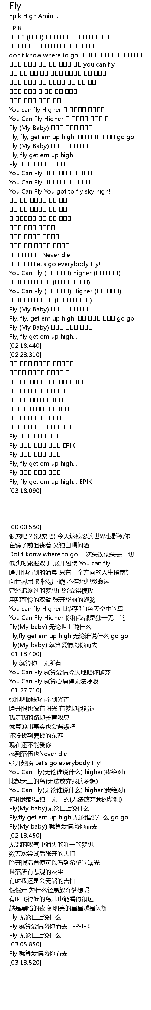 | [02:54.750] | Fly 사랑이 널두고 떠나도 EPIK |