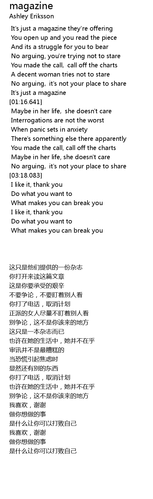 | [01:03.994] | It' s just a magazine |