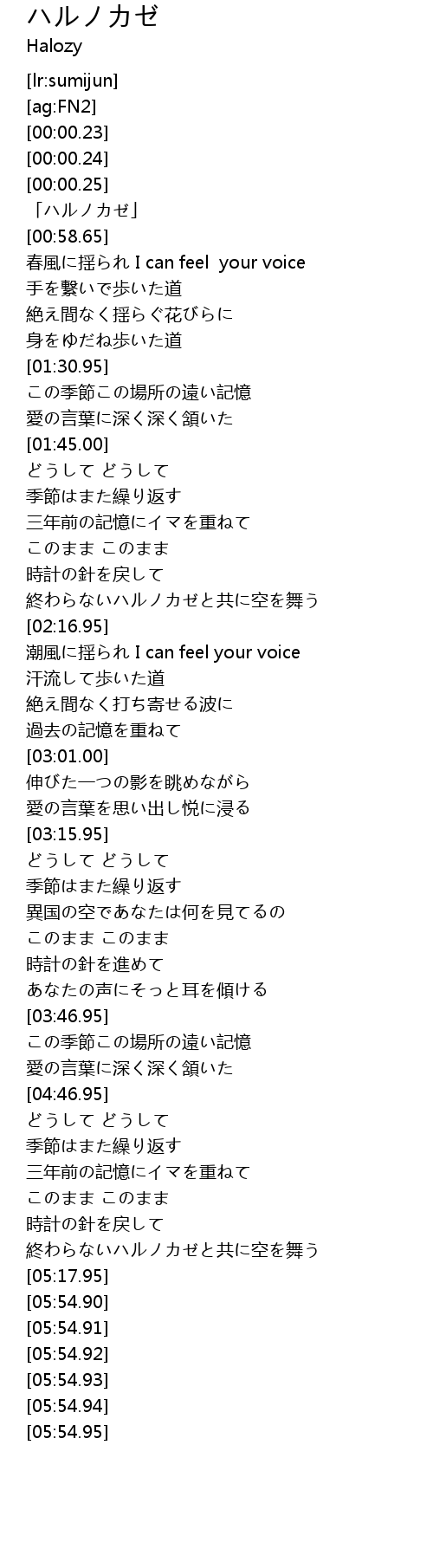 | [00:00.95] | 「ハルノカゼ」 |