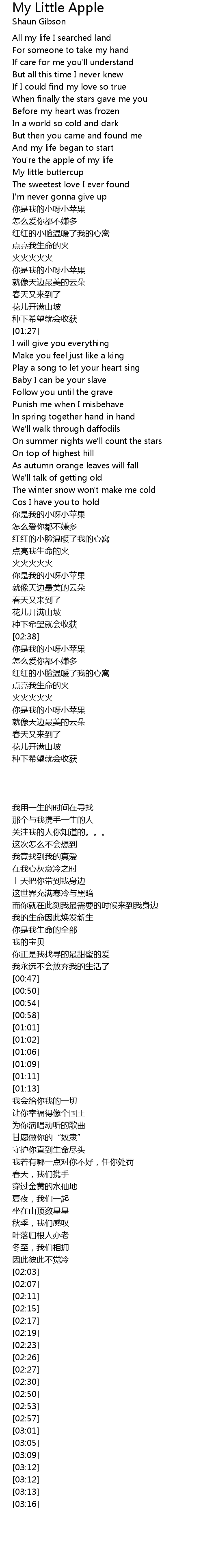 | [02:03] | 你是我的小呀小苹果 |