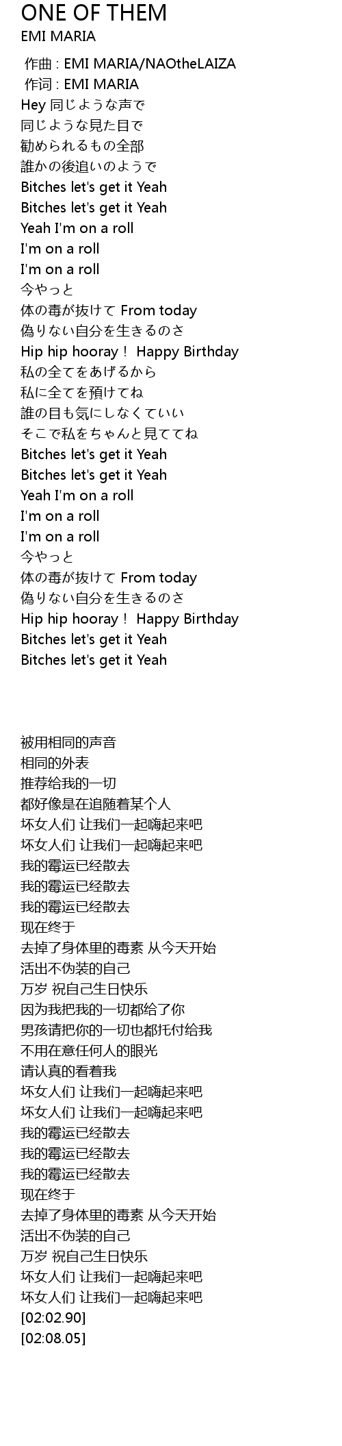| [00:00.00] | zuò qǔ : EMI MARIA NAOtheLAIZA |