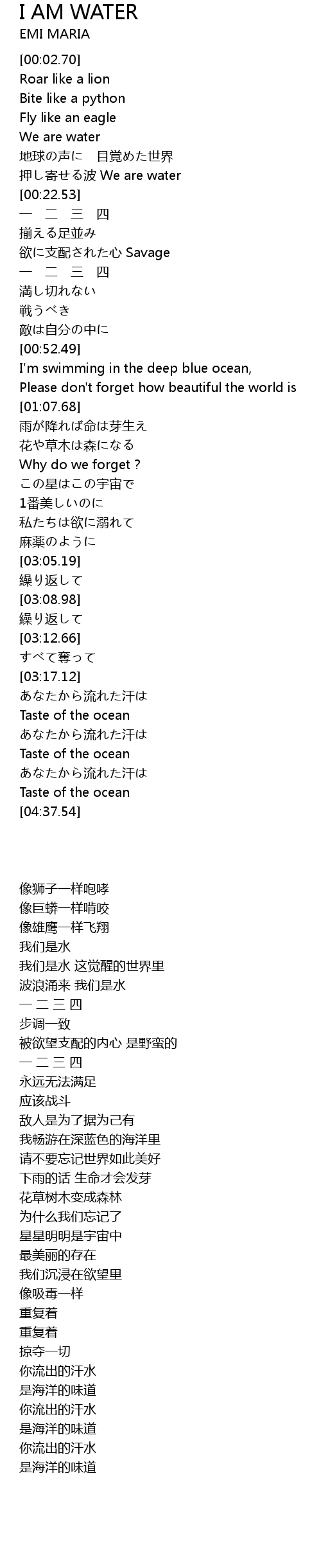 | [04:33.71] | Taste of the ocean |