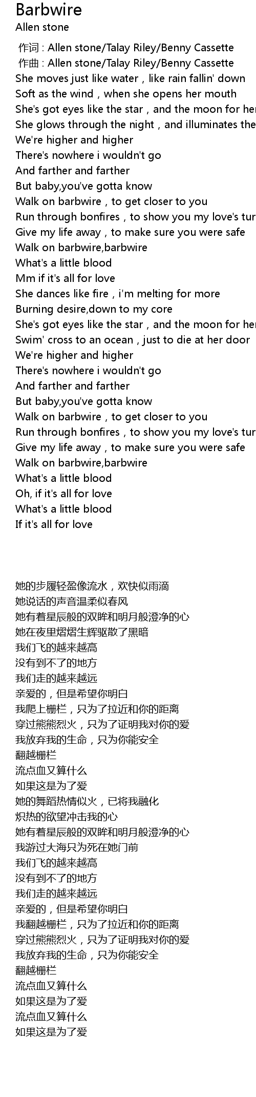 | [00:00.000] | 作词 : Allen stone/Talay Riley/Benny Cassette |