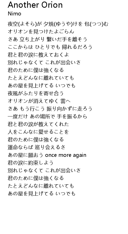| [00:40.15] | オリオンを見つけたよごらん |
