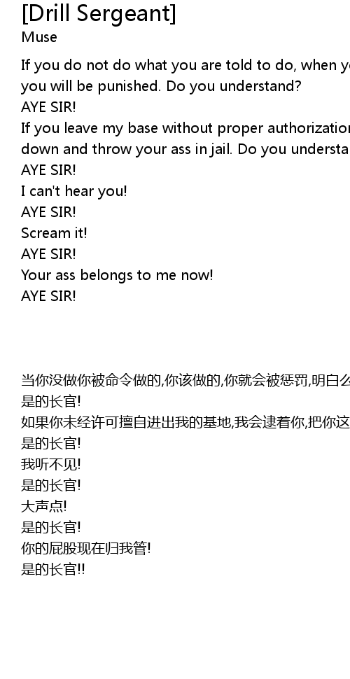 | [00:00.41] | If you do not do what you are told to do, when you're told to do it, you will be punished. Do you understand? |