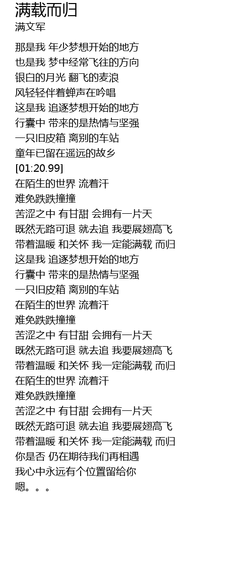| [03:38.03] | 带着温暖 和关怀 我一定能满载 而归 |