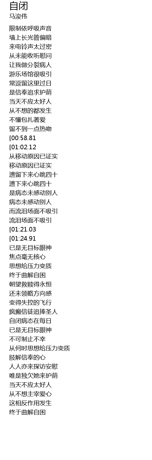 | [01:59.32] | 自闭病态在每日 |