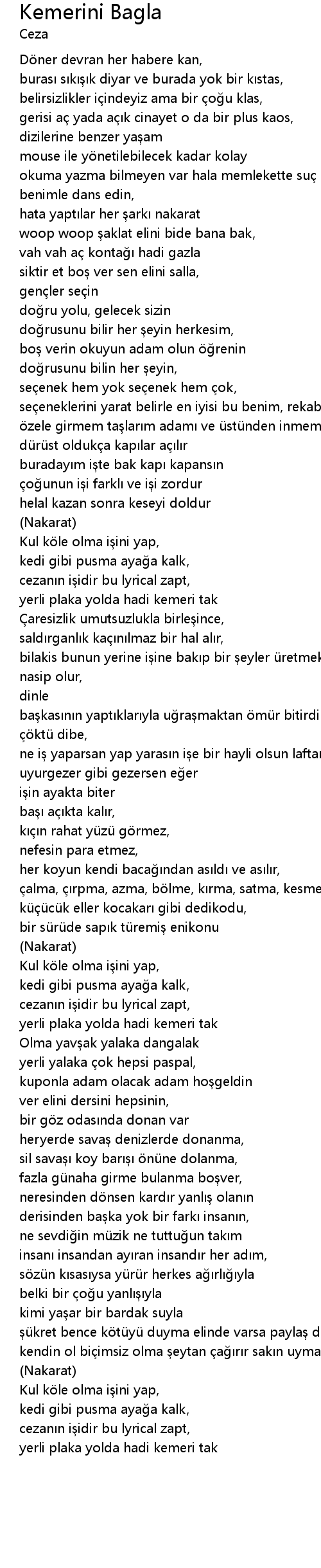 | zele girmem ta lar m adam ve ü stü nden inmem, | |