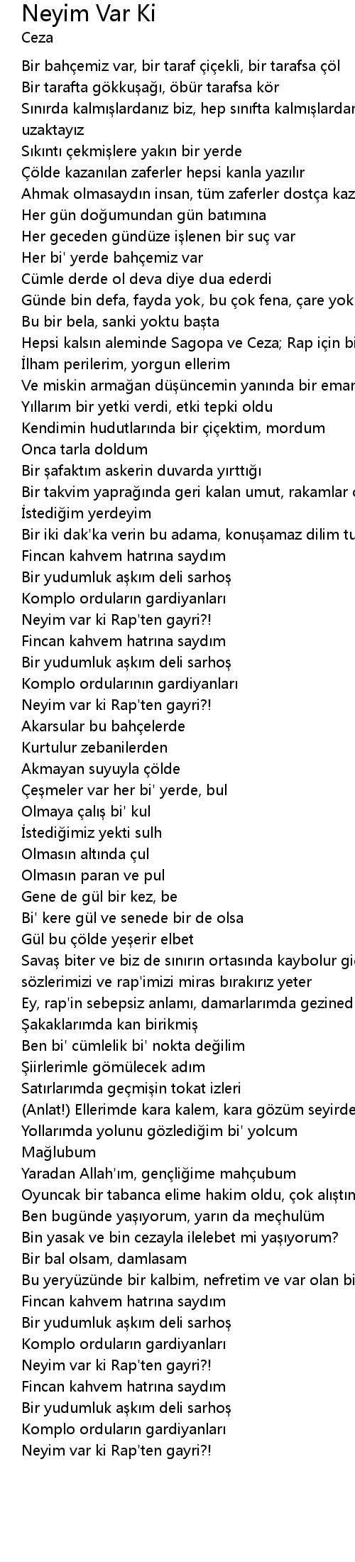 | [01:22.43] | Neyim var ki Rap' ten gayri?! |