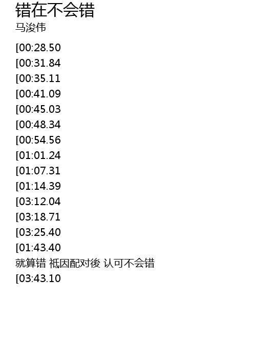 | [03:31.99][01:43.40] | 但我错在配对後 认知不会错 |