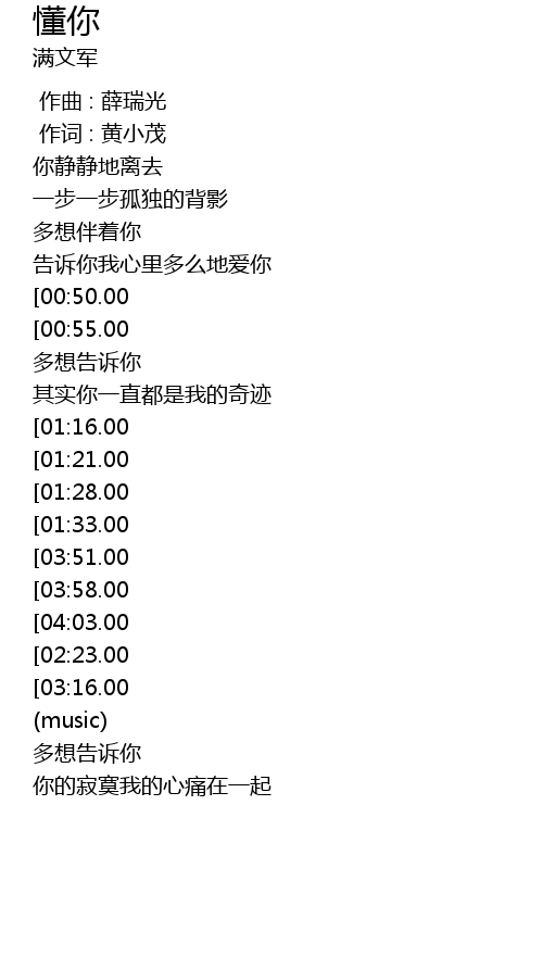 | [04:09.00][03:16.00][01:59.00] | gào sù nǐ wǒ qí shí yī zhí dōu dǒng nǐ |