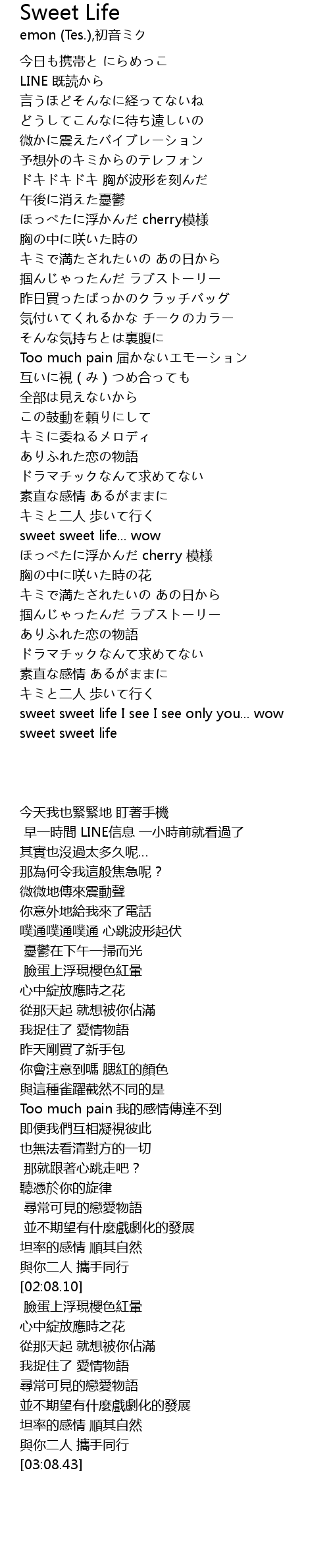 | [03:08.43] | sweet sweet life I see I see only you... wow |
