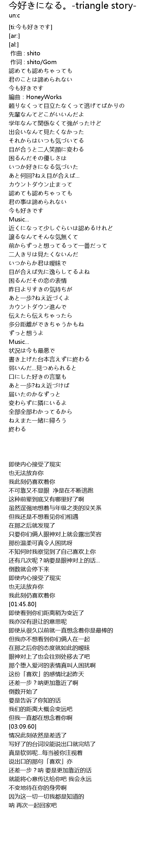 | [01:41.95] | 今も好きです |