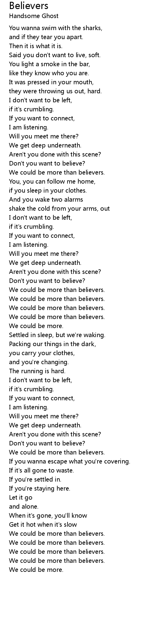 We could be more than believers. |