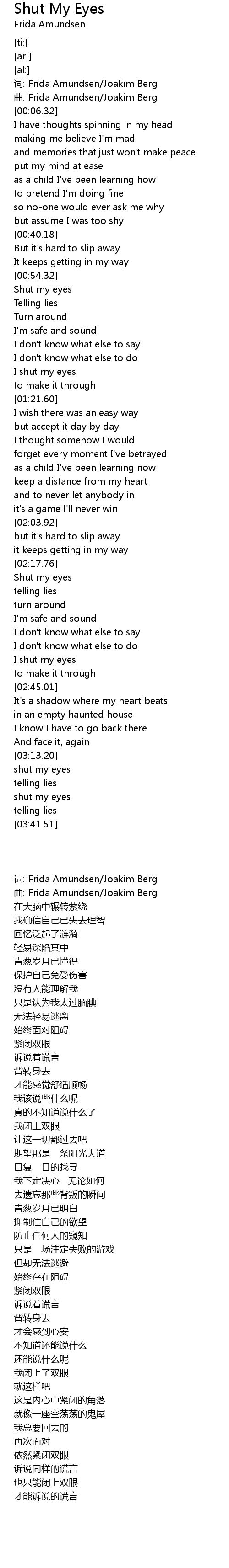 | [00:03.54] | qū: Frida Amundsen Joakim Berg |