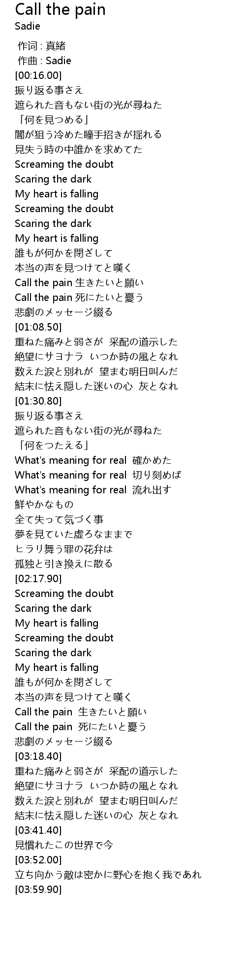 | [00:59.00] | Call the pain 生きたいと願い |