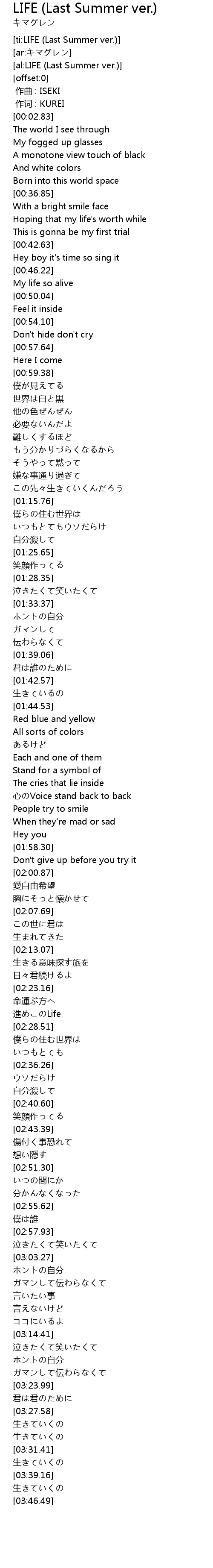 | [ti:LIFE (Last Summer ver.)] | |