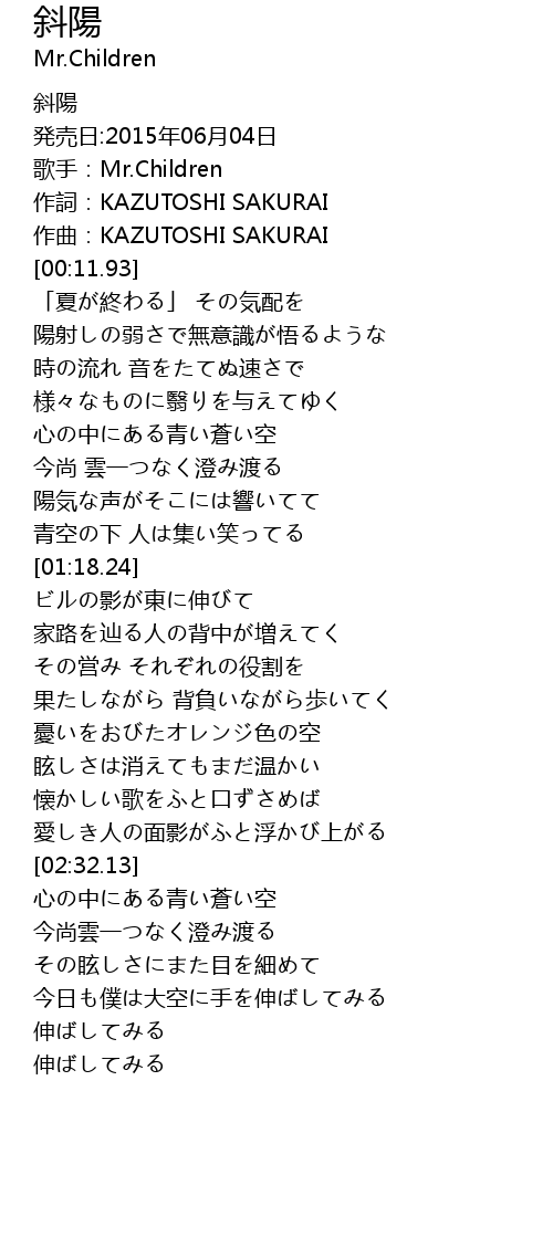 | [00:10.18] | 作曲:KAZUTOSHI SAKURAI |