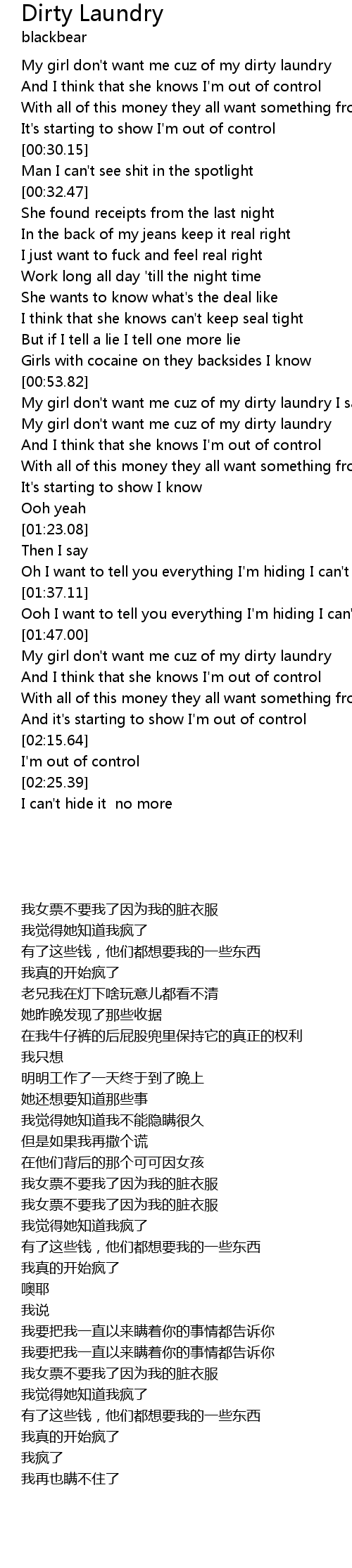 My girl don't want me cuz of my dirty laundry I say |