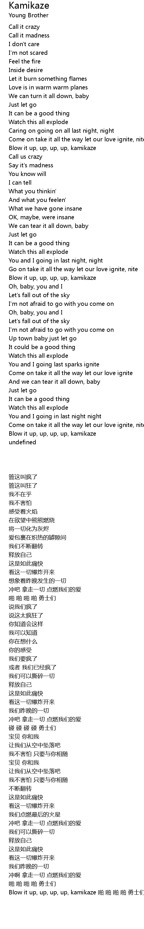 Blow it up, up, up, up, kamikaze |