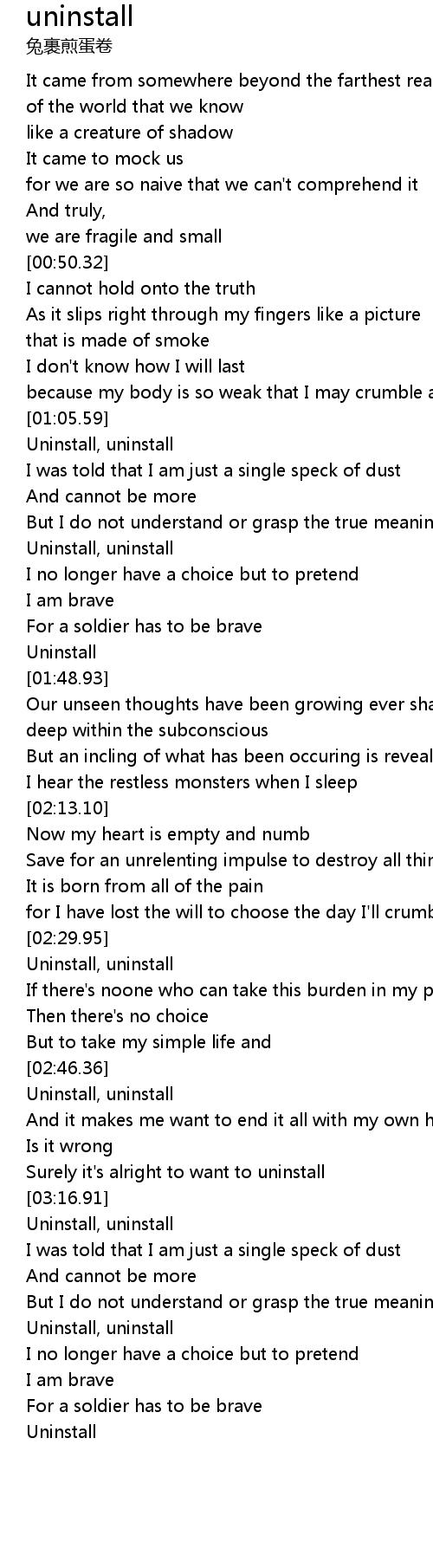 | [02:46.63] | Uninstall, uninstall |