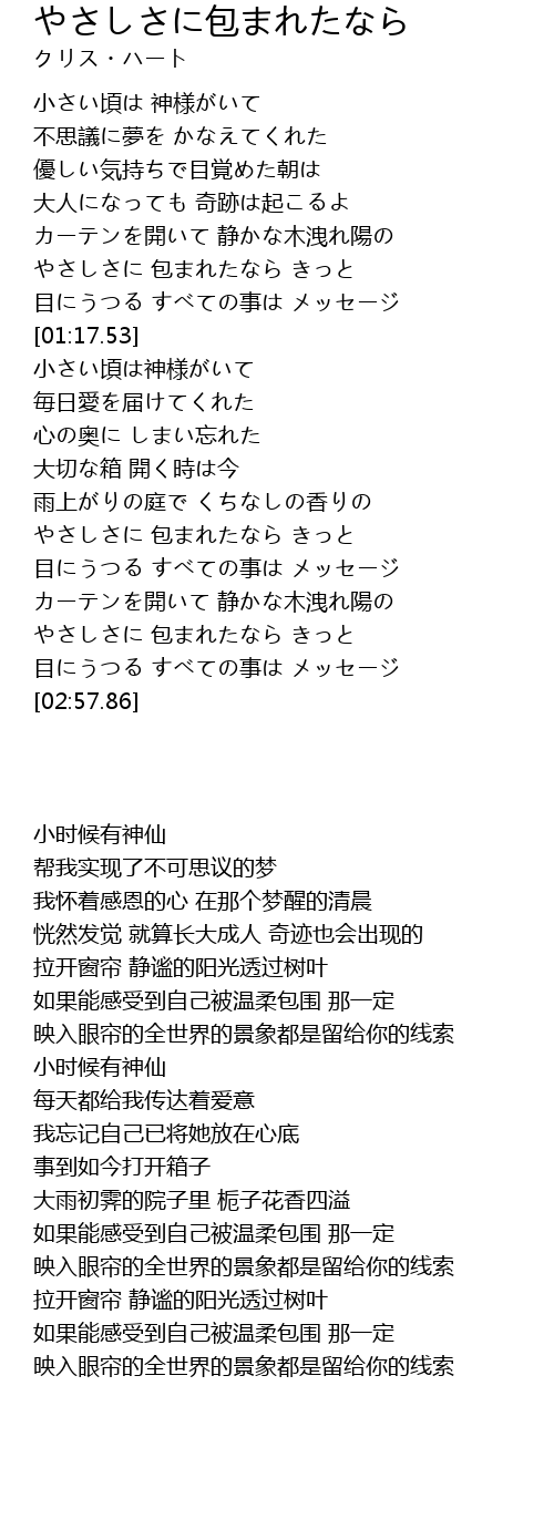 やさしさに 包まれたなら きっと |