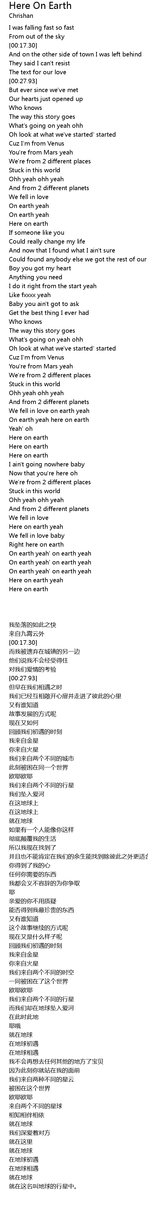 We fell in love on earth yeah |