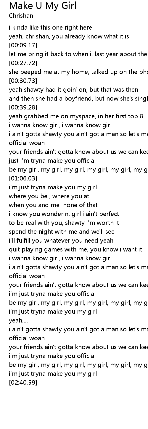 i ain't gotta shawty you ain't got a man so let's make this thing official woah |
