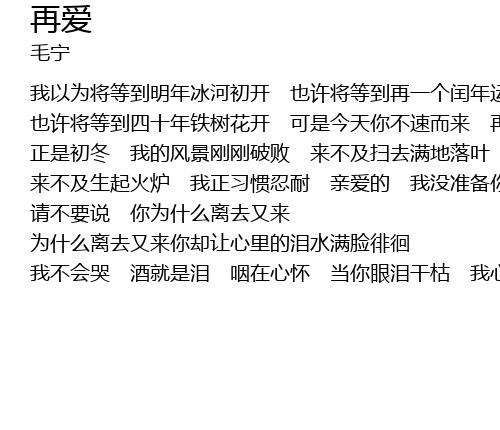 | 我不会哭 酒就是泪 咽在心怀 当你眼泪干枯 我心已成大海 |