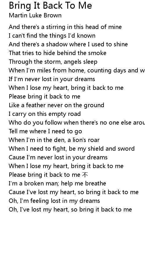 | [01:46] | When I lose my heart, bring it back to me |