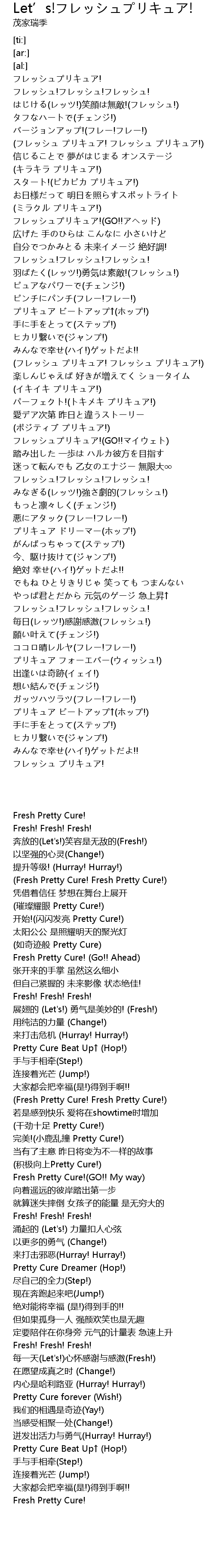 | [00:18.35] | (フレッシュ プリキュア! フレッシュ プリキュア!) |
