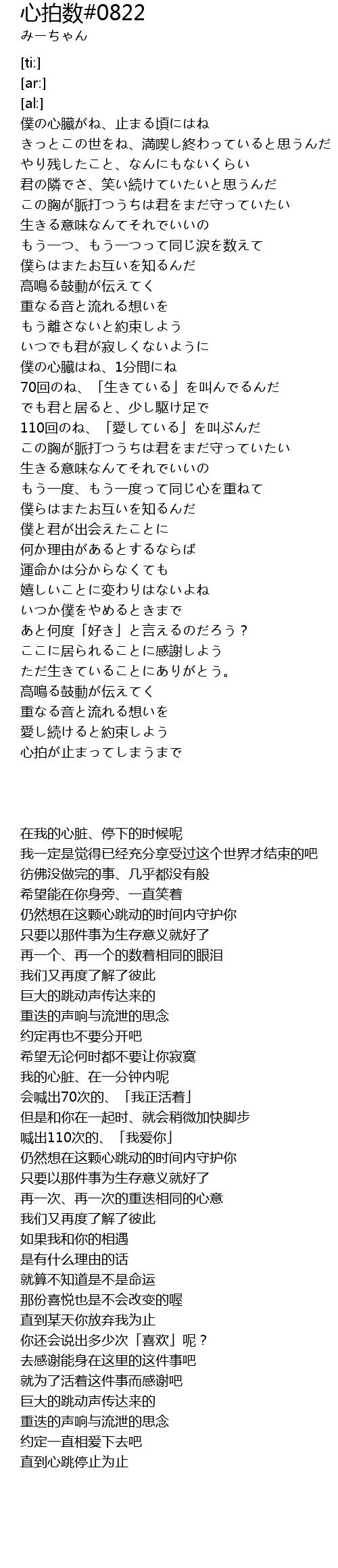 | Song | 心拍数#0822 |