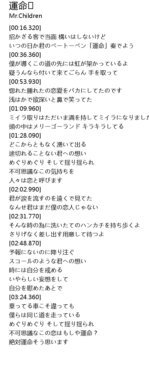 | [04:16.520] | 不可思議なこの恋はもしや運命? |