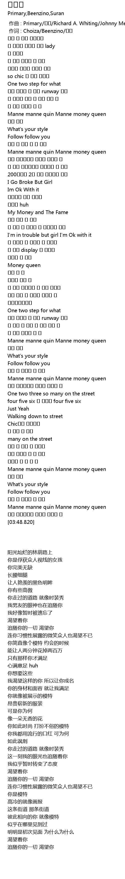 | [03:40.020] | Manne manne quin Manne money queen |