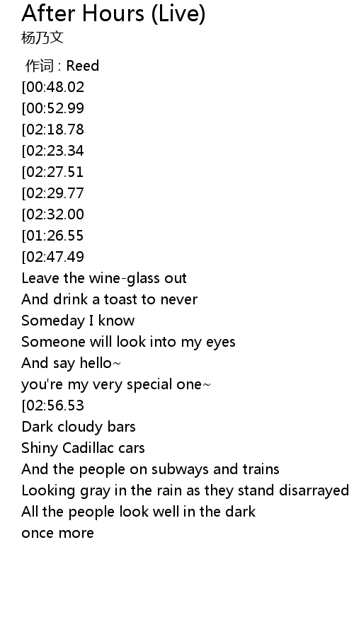 | [00:12.13][00:52.99][02:14.76] | the night could last forever |
