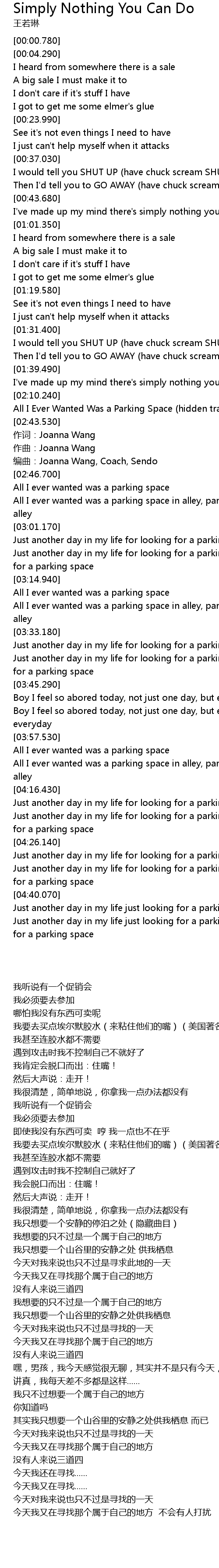 | [02:42.350] | All I Ever Wanted Was a Parking Space hidden track |