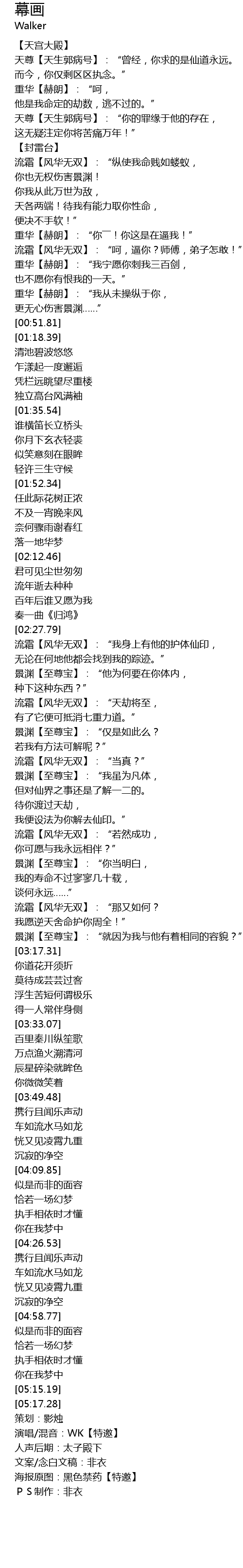 | [05:24.49] | 文案/念白文稿:非衣 |