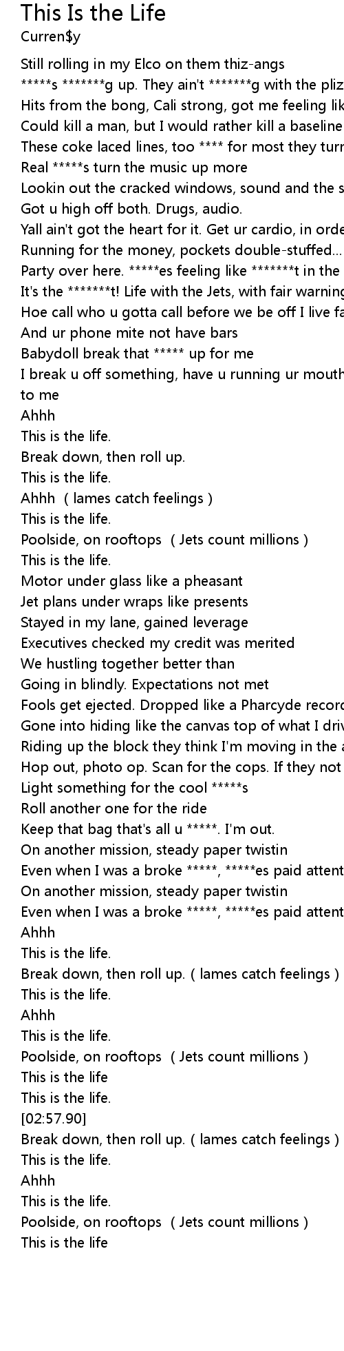 | [02:24.59] | Even when I was a broke *****, *****es paid attention |
