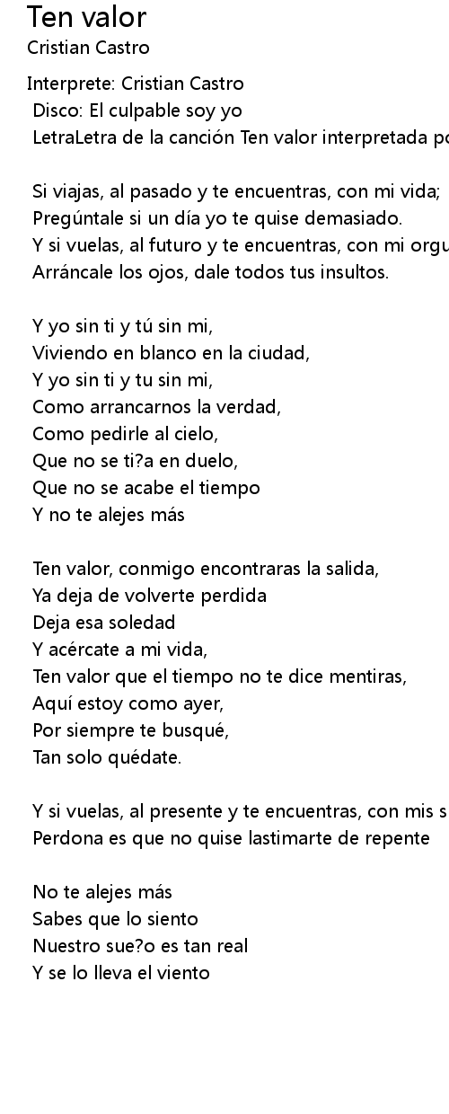 | LetraLetra de la canció n Ten valor interpretada por Cristian Castro: | |