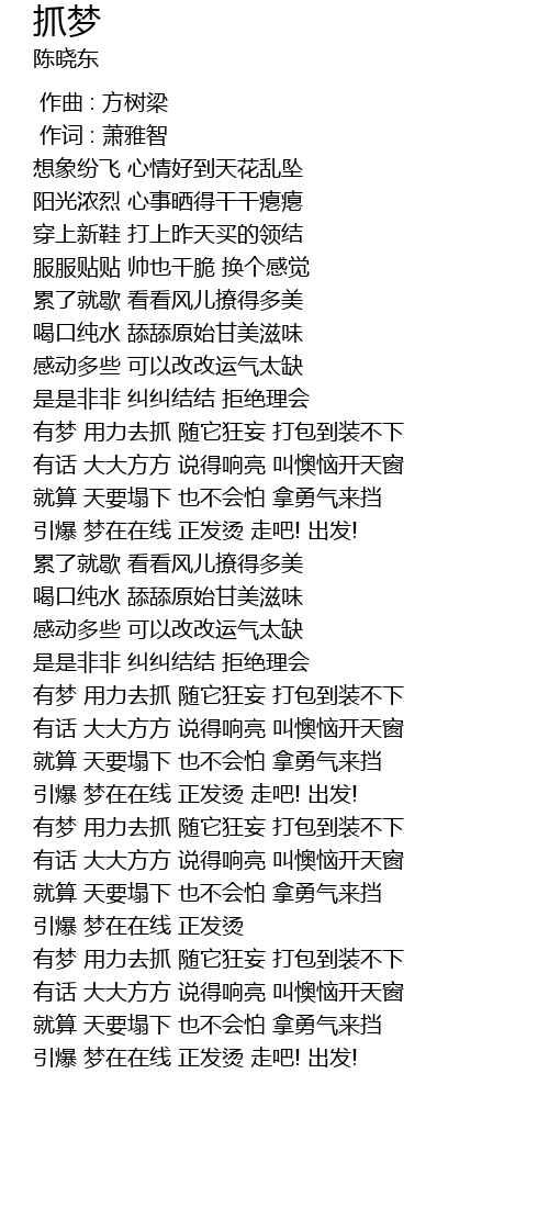 | [01:52.23] | 有梦 用力去抓 随它狂妄 打包到装不下 |