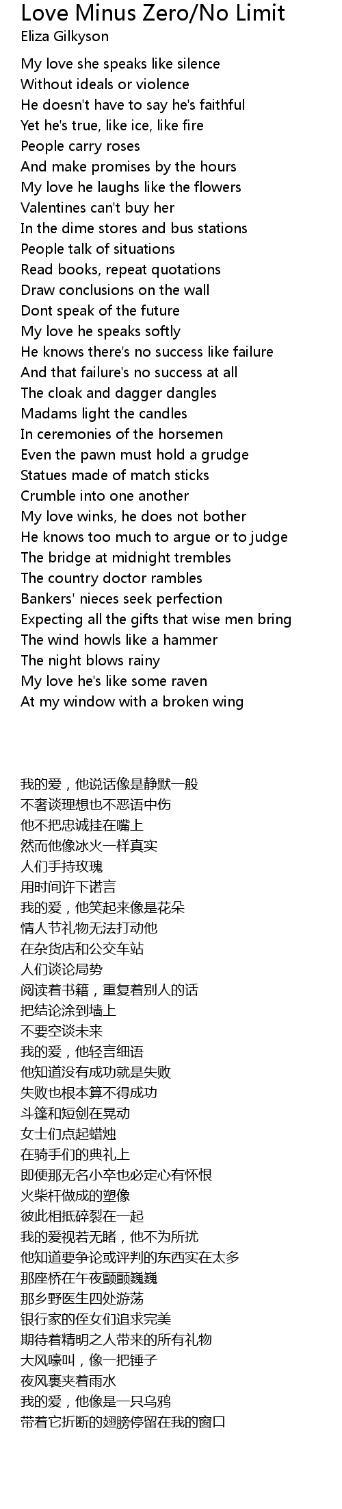 My love she speaks like silence |