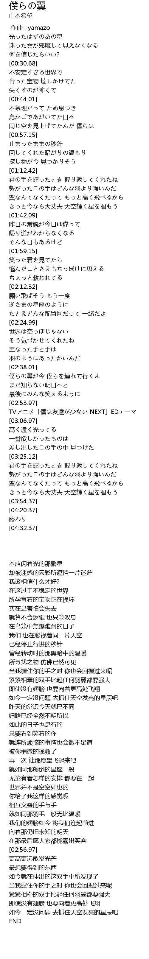 | [03:32.52] | 繋がったこの手はどんな羽より強いんだ |