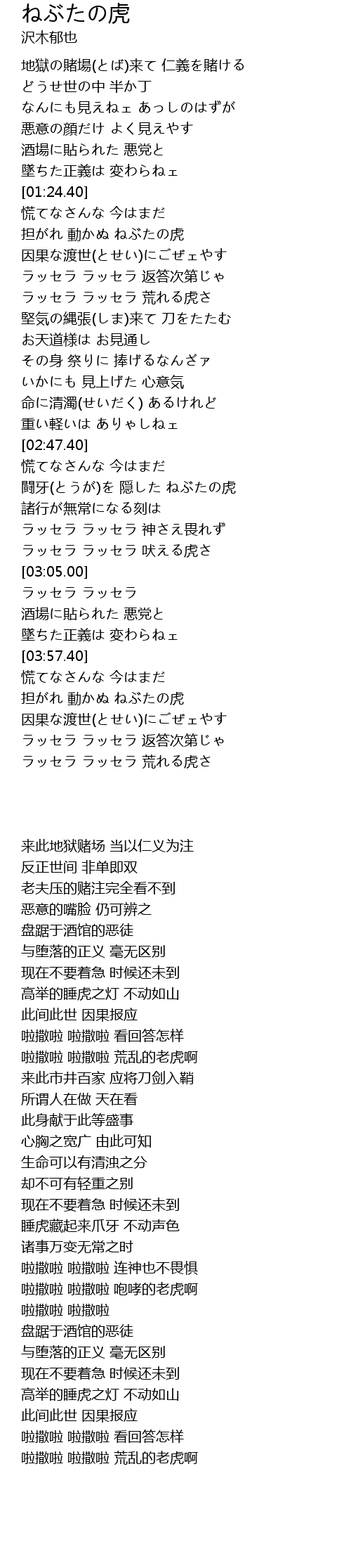 | [01:52.00] | ラッセラ ラッセラ 荒れる虎さ |