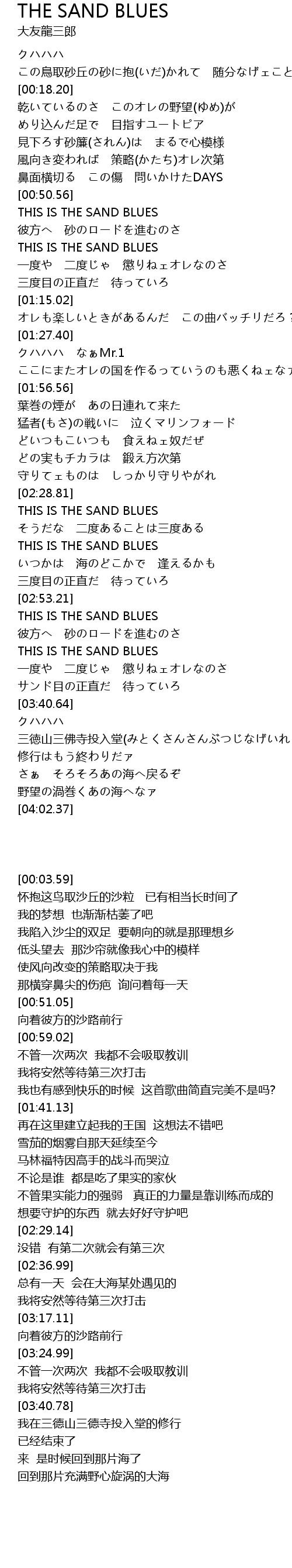| [03:19.64] | 彼方へ 砂のロードを進むのさ |