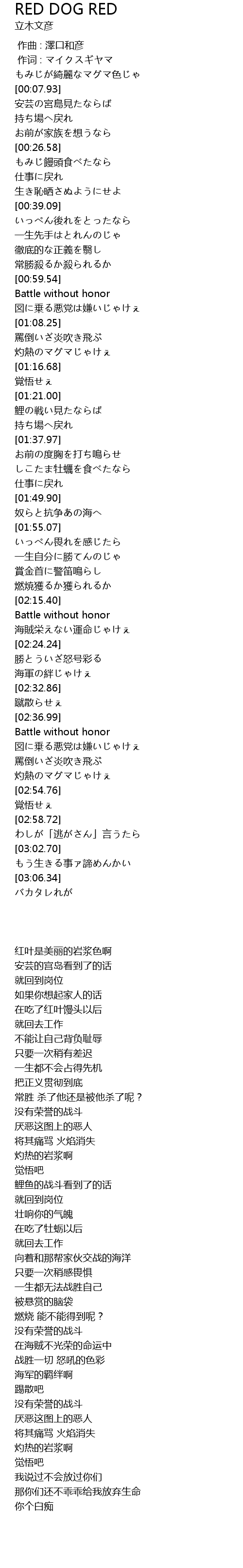 | [01:01.12] | Battle without honor |