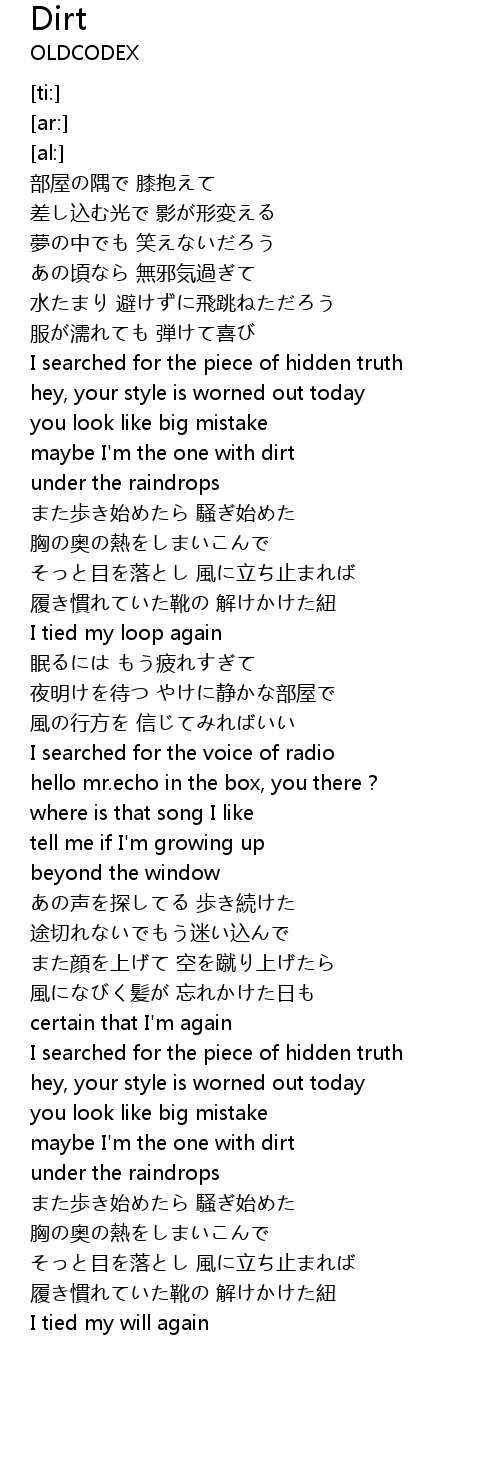| [03:29.47] | 履き慣れていた靴の 解けかけた紐 |