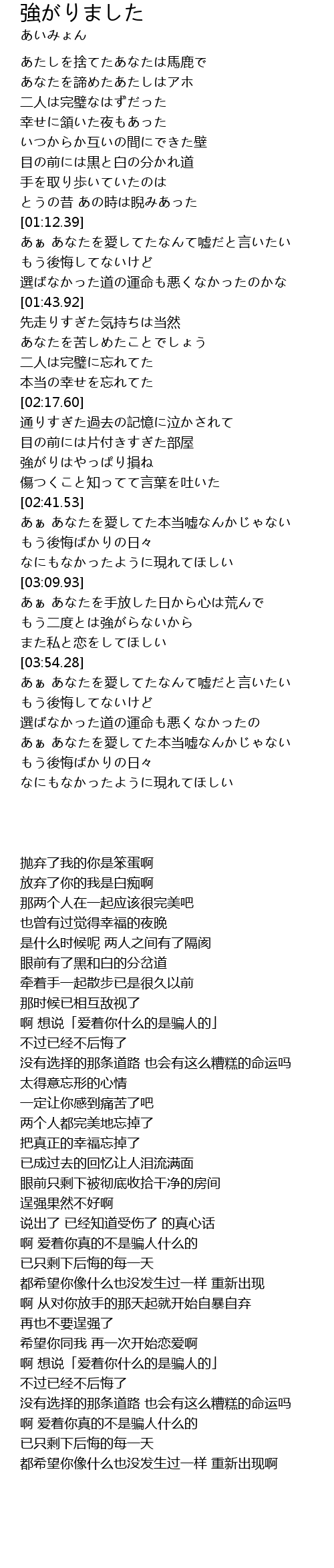 [03:54.64] あぁ あなたを愛してたなんて嘘だと言いたい