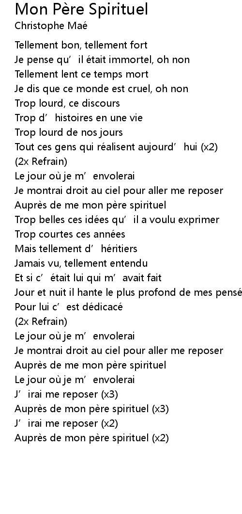 | Song | Mon Père Spirituel |